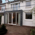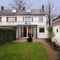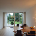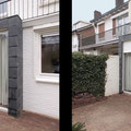 Deze fraaie woning uit de jaren 50 van de vorige eeuw werd gerenoveerd en uitgebreid. Hierdoor voldoet de woning weer aan hedendaagse eisen van comfort, functionaliteit en esthetiek. Aan de achterzijde werd, door middel van een bescheiden ingreep en met respect voor de bestaande architectuur, een uitbouw gerealiseerd. Een minimalistische vormgeving en afwerking met anthraciete Braziliaanse leisteen creëren een harmonieus contrast tussen oud en nieuw. Met de uitbouw kreeg de woonkamer niet alleen de gewenste toename in gebruiksruimte, maar dankzij een transparante schuifpui van royaal formaat werd ook de tuin bij de woning betrokken.