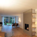Het interieur van o.a. woonkamer, keuken, hal, badkamers en toiletruimte onderging een ware gedaantewisseling. Zo pronkt in het hart van de woonkamer een volledig nieuwe schouw met gashaard welke is afgewerkt met een exclusieve grijze Italiaanse zandsteen.
